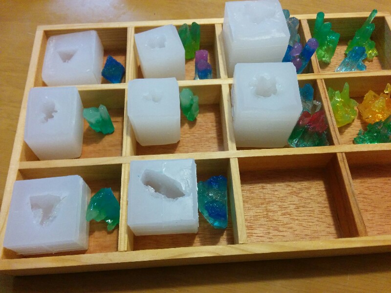 前に使っていた物もまだ使えるのですがサイズ的にガラスドームに入るやつとか、新しくキーホルダーやブローチ用の鉱石の型を作りたくて1日中モールド作りで頑張っていました♪
