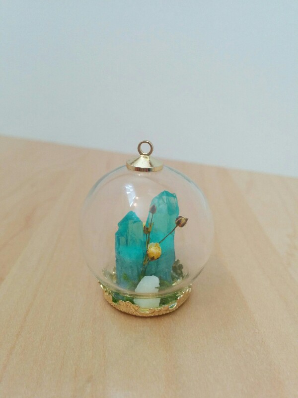 201607/10 鉱石ドーム ガラスドーム 0 前に鉱石から型を取って作ったレジン鉱石に自家製ドライフラワーとガラスドームをあわせてチャームを作りました♪ ドライフラワーは、カスミ草です。 あと、白く映っている石は蓄光石になります。 暗闇で綺麗に光ります♪ この他にも濃いブルーのものも作ったのでいずれ日記にUPしたいなぁ・・・ あとはこれを何に加工するかだな・・・ 大きさ的にネックレスかな・・・ PR